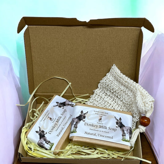 Natural Unscented Donkey Milk Soap Bar & Soap Bag Gift Set | Gift Boxed