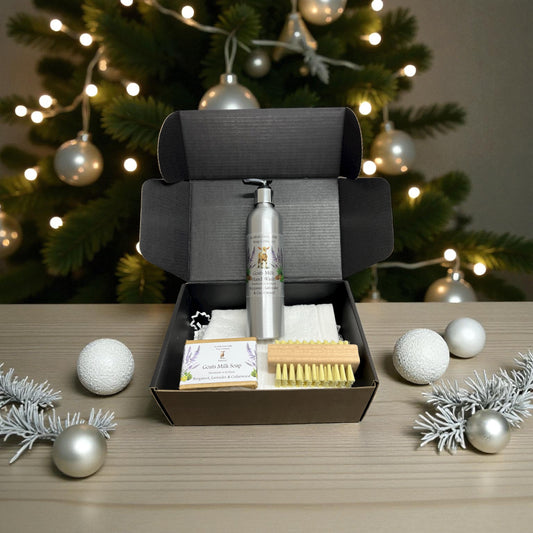 Luxury Christmas Goats Milk Hand Wash (300ml Aluminium Bottle) and Soap Bar Gift Set |4 Scent Boxes to Choose From | Gift Boxed