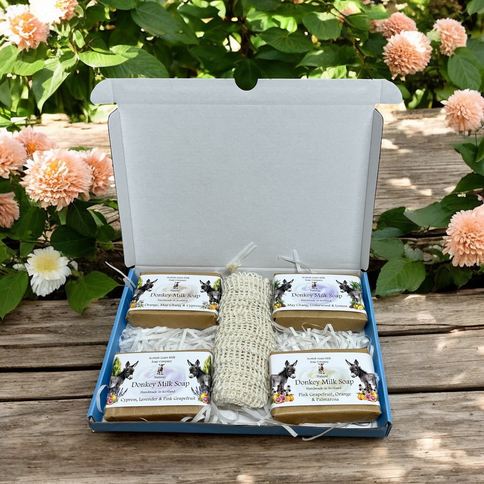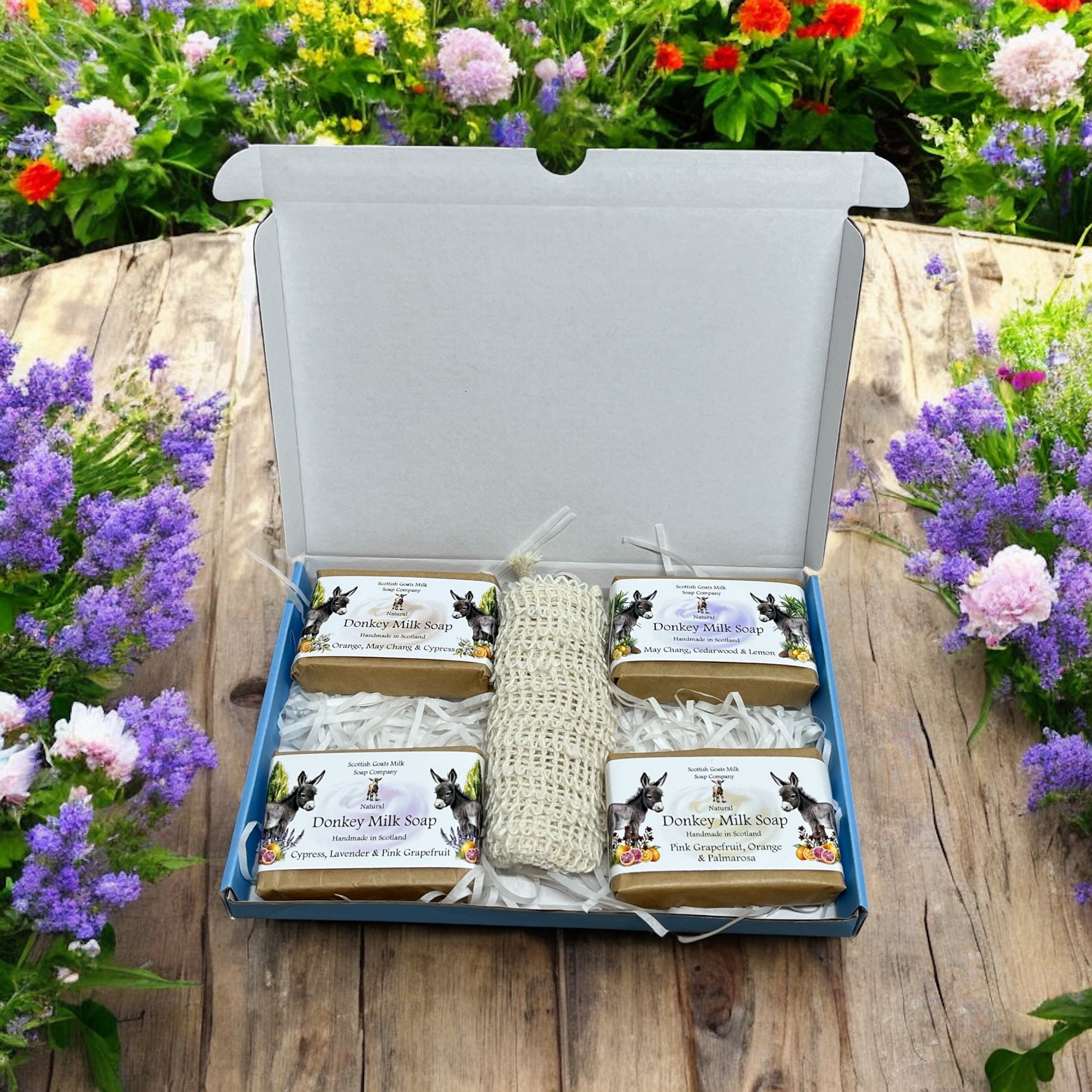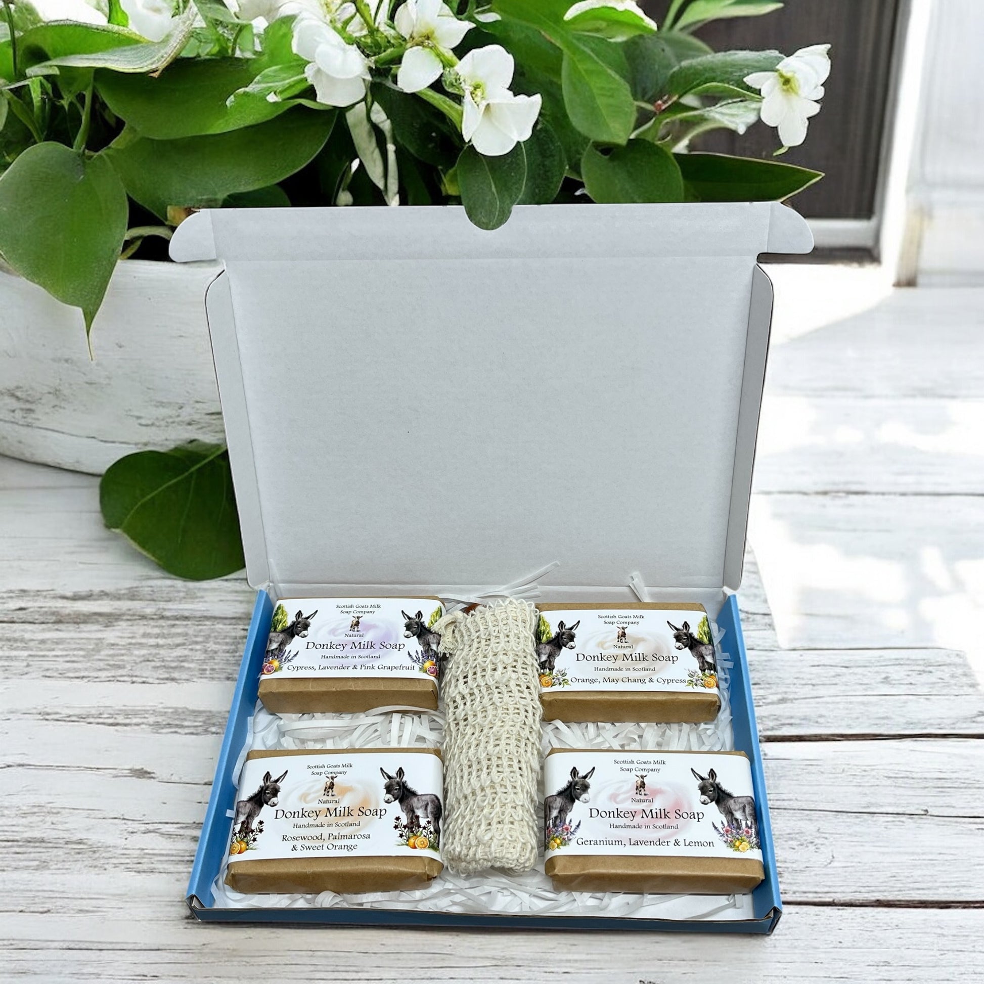 Our essential oil donkey milk soap gift boxes make a lovely treat for anyone.