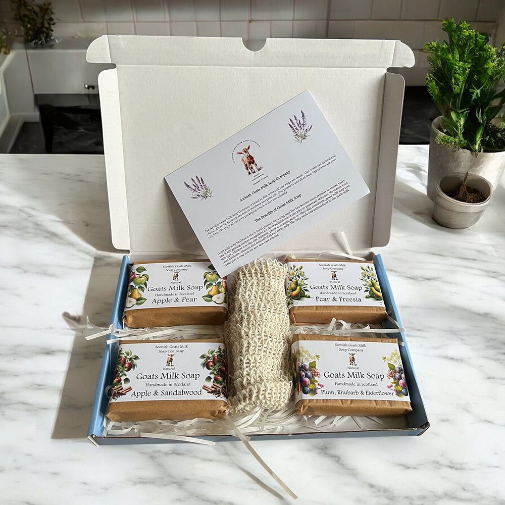 Our fruit and floral scented goats milk soap gift boxes make a lovely treat for anyone.