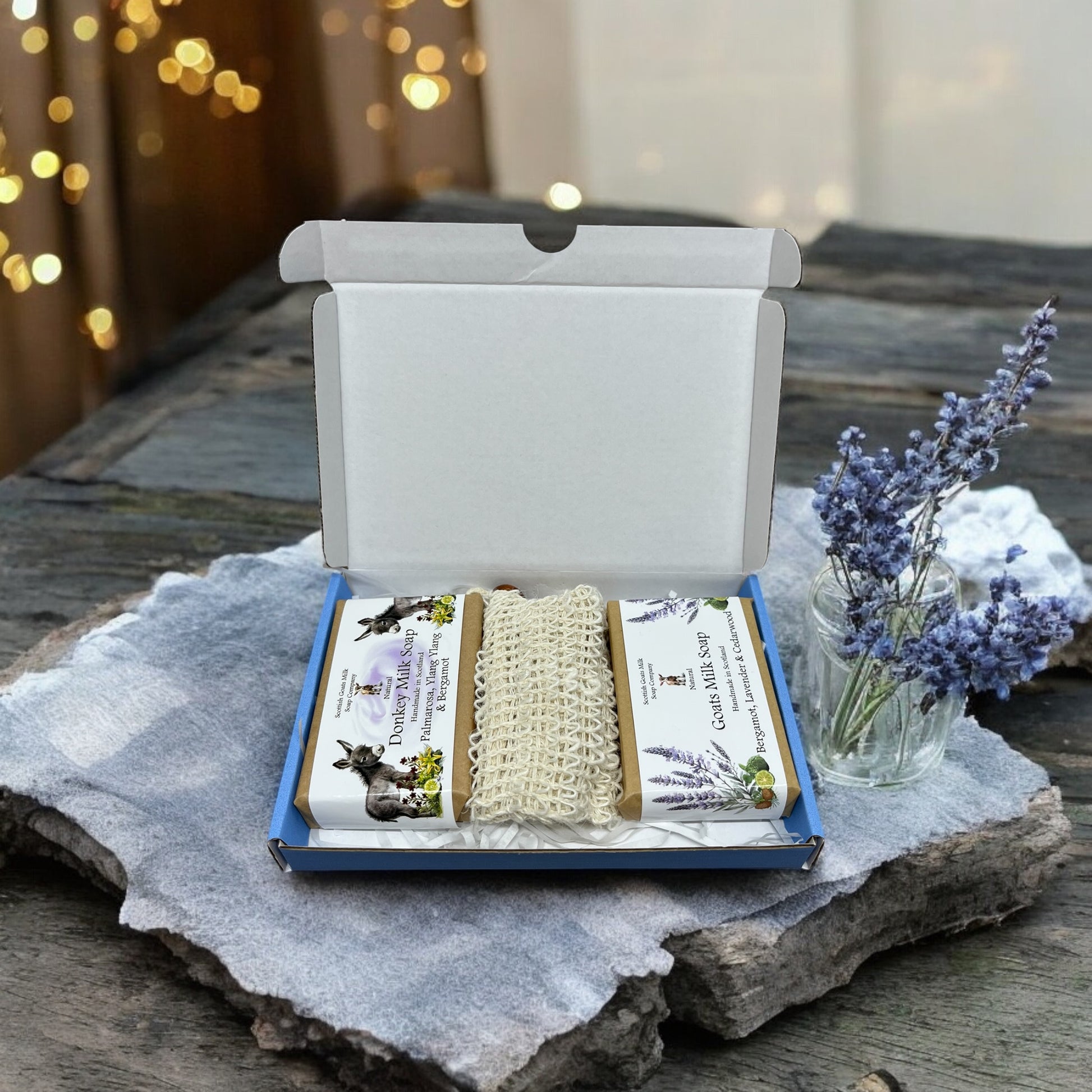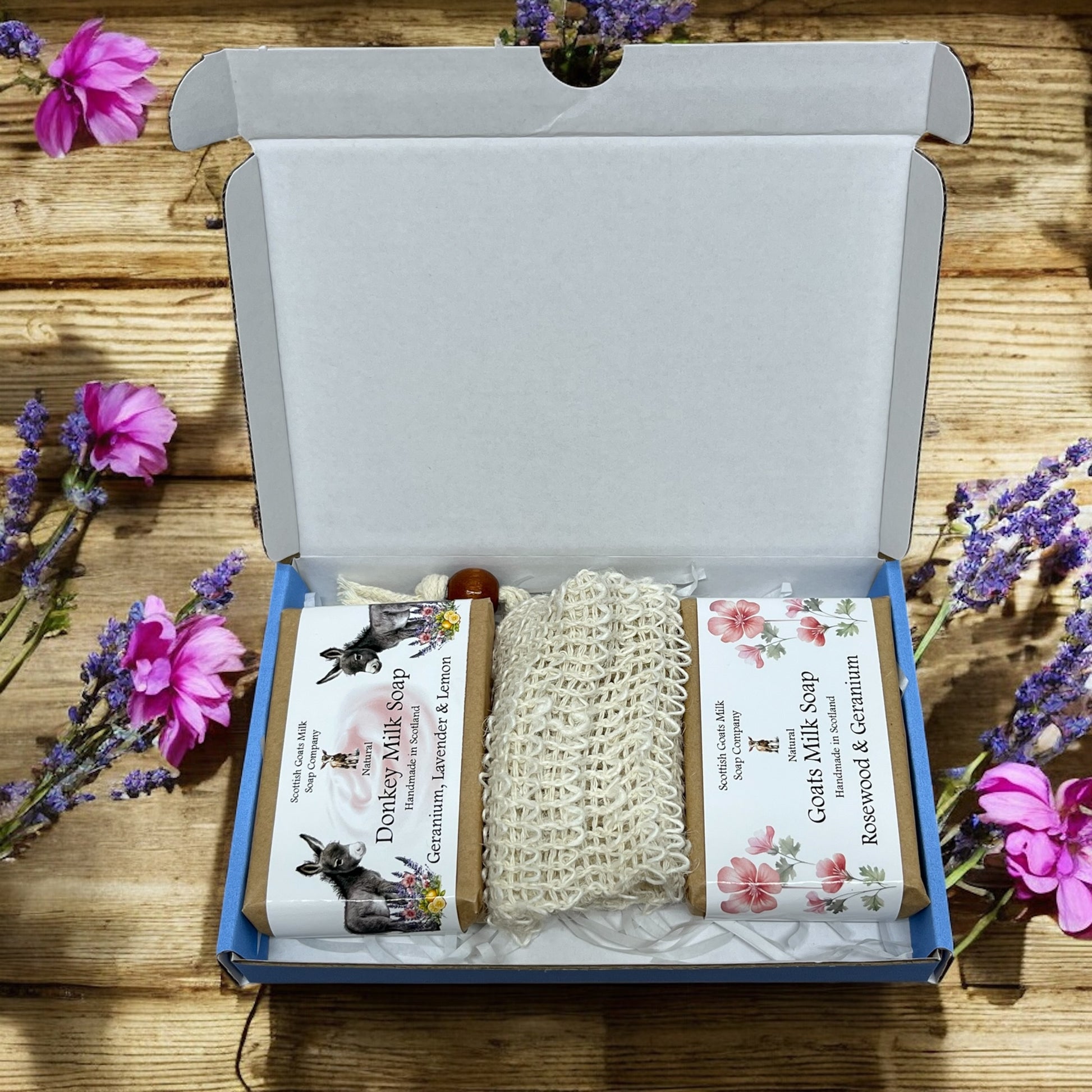 Our essential oil goat and donkey milk soap gift boxes make a lovely treat for anyone.