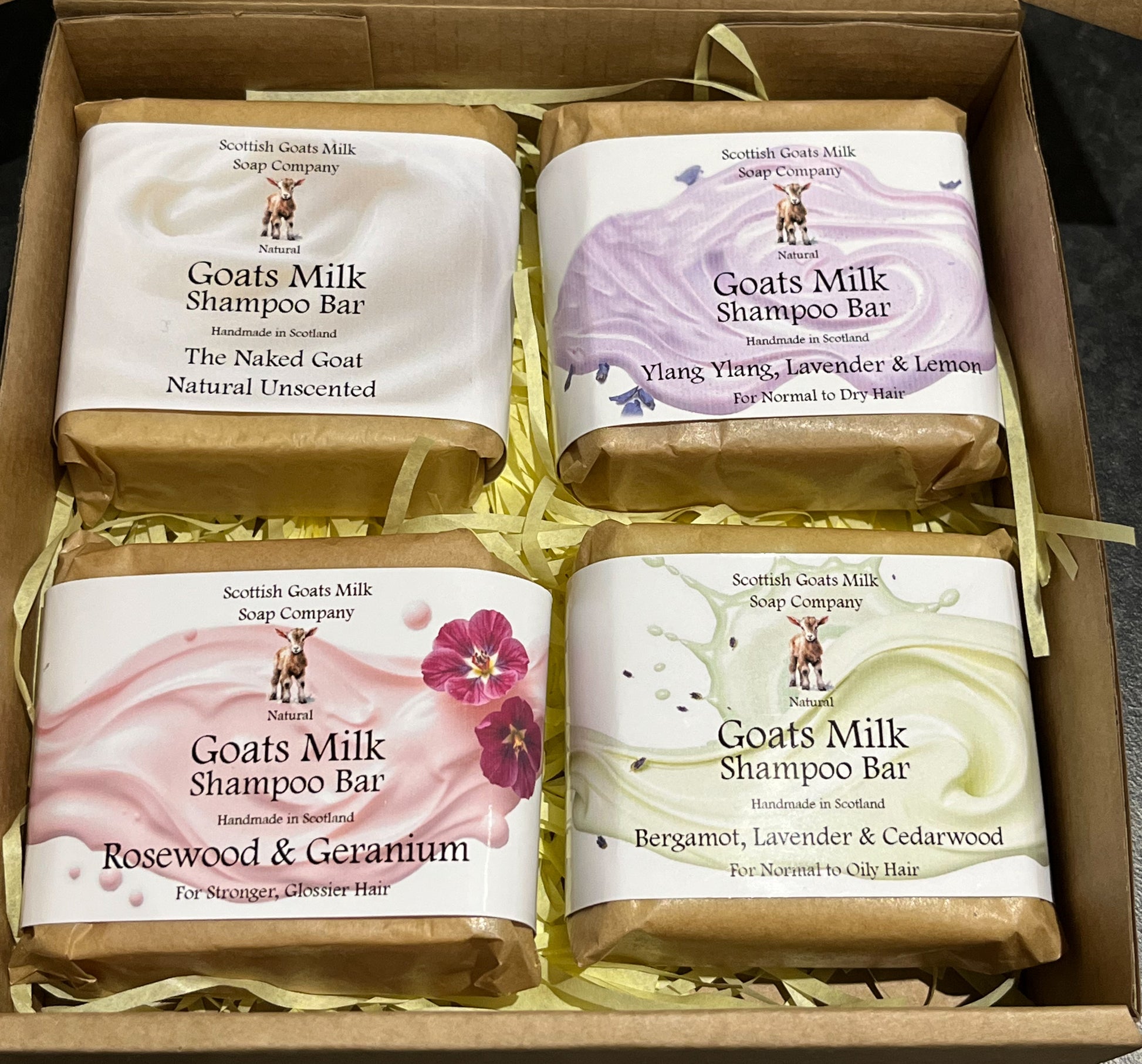 Our essential oil goats milk shampoo bar gift boxes make a lovely treat for anyone.