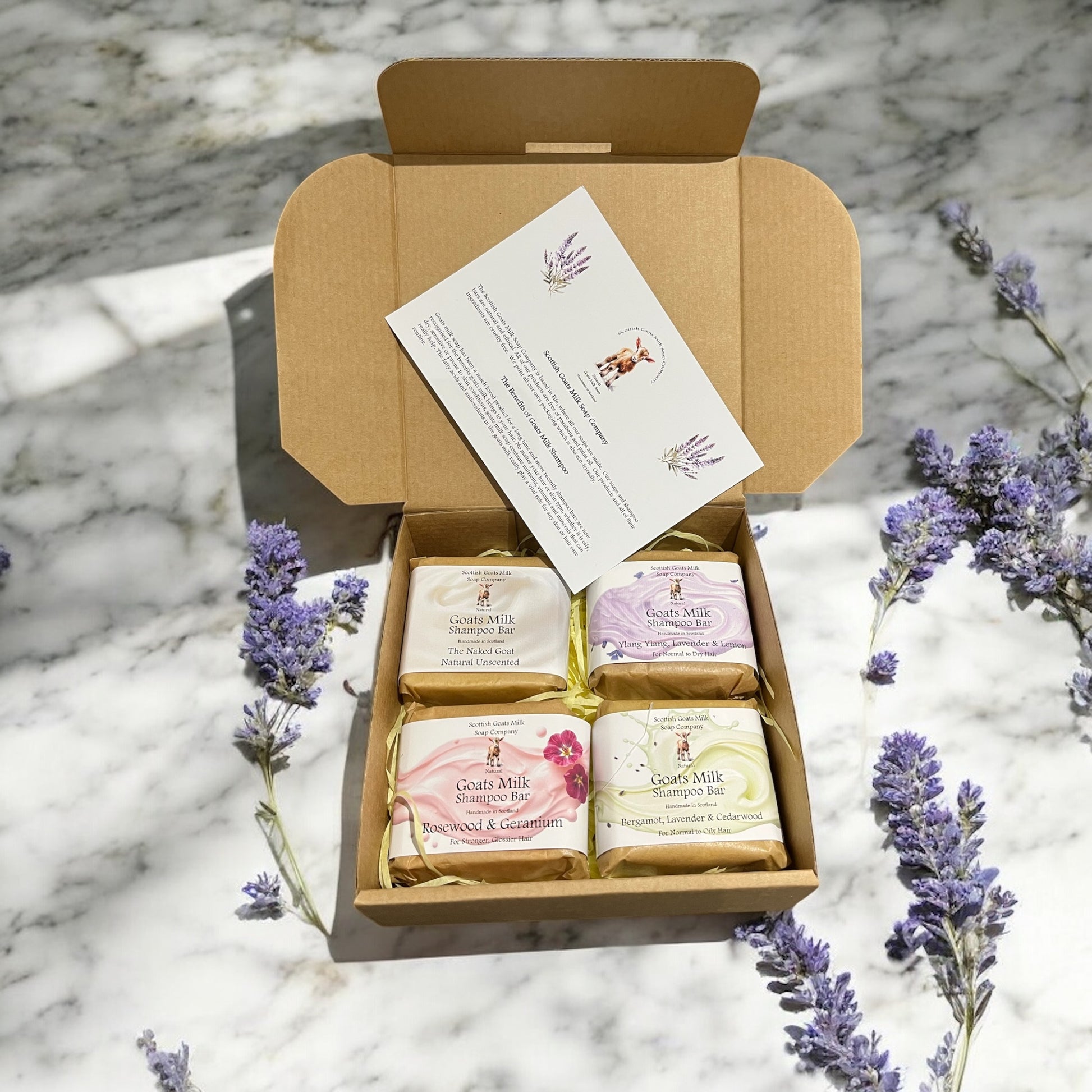 Essential Oil Goats Milk Shampoo Bar Gift Set | 4 Bars of Handmade Shampoo | Gift Boxed