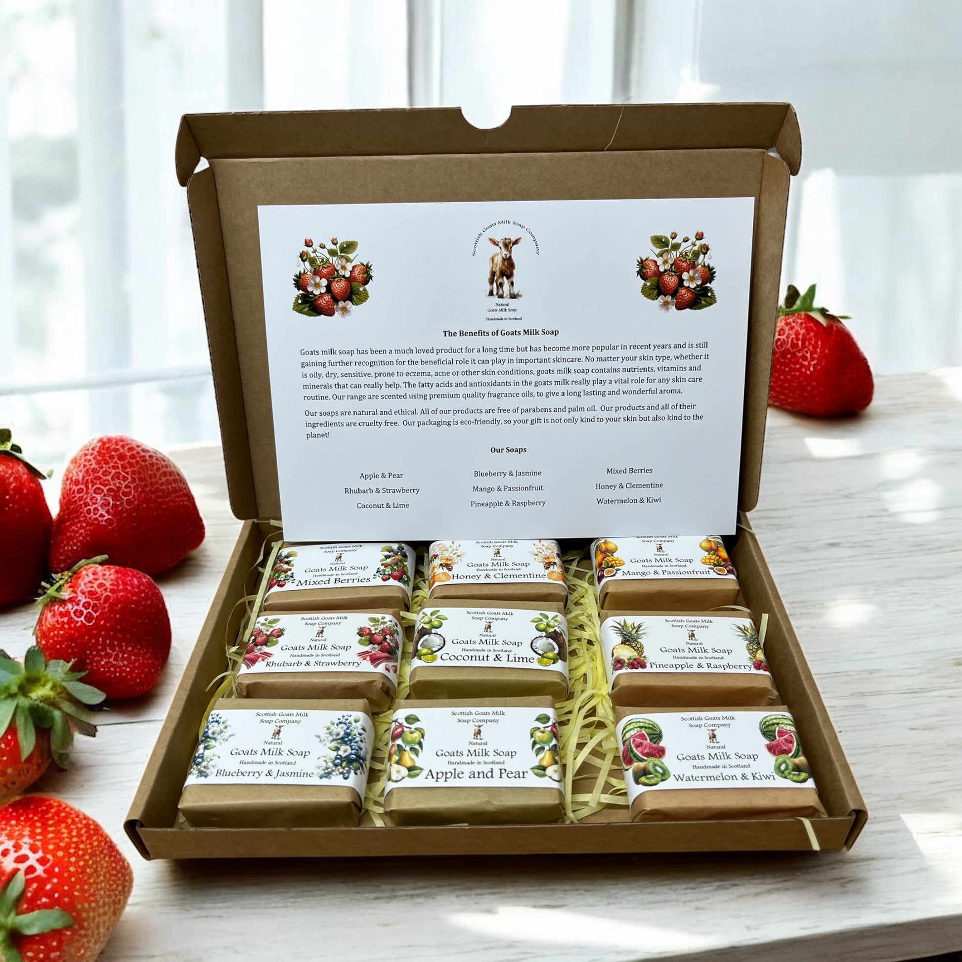 Guest Size Fruit Scented Goats Milk Soap Bar Gift Set | 9 Varieties | Gift Boxed