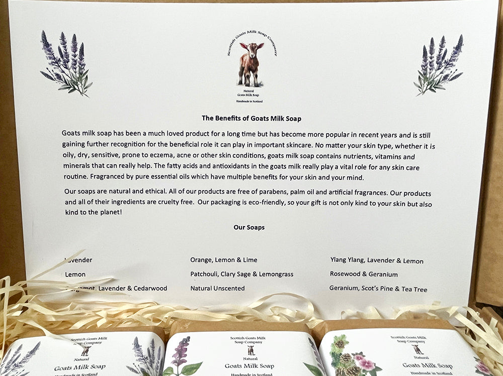 There is a note within each box telling the recipient a little about the benefits of goats milk soap.