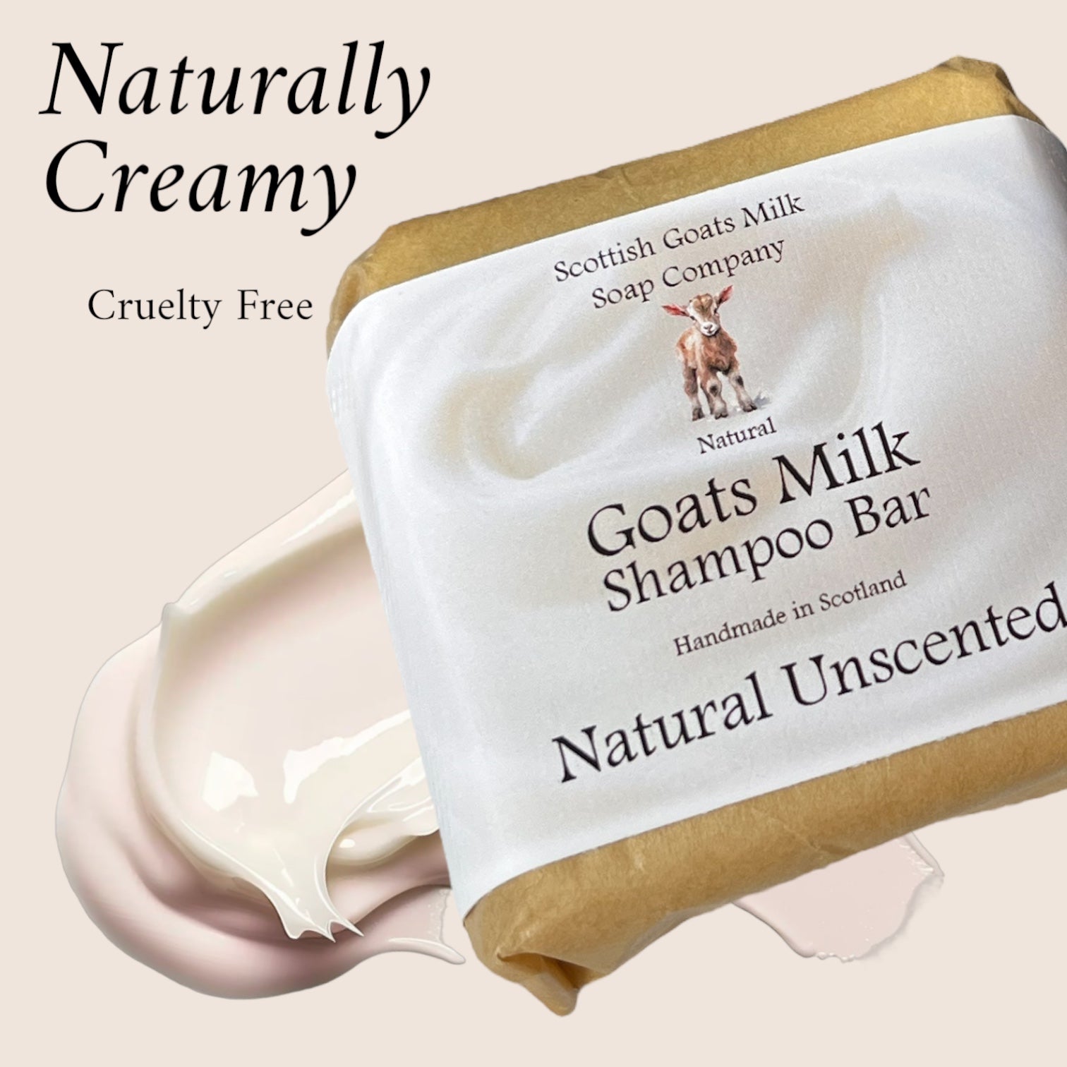 Our natural, unscented shampoo bar is perfect for those who prefer the pure benefits of goat's milk without any added fragrances.