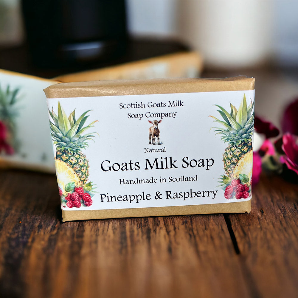 Experience the indulgent fusion of tropical fragrances with our Pineapple and Raspberry scented goat's milk soap bars, and let the delightful blend of fruits transport you to a paradise of relaxation and rejuvenation with every wash