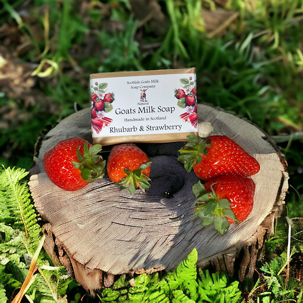Experience the blissful sensation of cleanliness and freshness with our Rhubarb and Strawberry scented goat's milk soap bars, the perfect addition to your daily skincare routine.